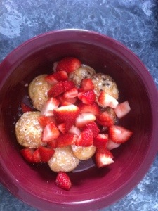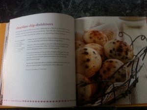 With the blizzard this weekend I was craving some comfort food (don’t we all during snowstorms?). At first I was contemplating making pancakes for breakfast this morning, but I didn’t want anything that heavy before heading out to shovel my way out of our front door. And then I remembered – Ebelskivers! I flipped through my cookbook to figure out which flavors to make. I always like to make the “vanilla batter” because it is very versatile and goes well with fresh fruit, and a second recipe to try something new. I decided on “chocolate chip” Ebelskiver today, yummmm!