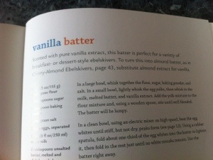 My favorite basic recipe to use though is the “vanilla batter” recipe, which calls for the ingredients listed above in the “basic batter” recipe as well as 1/2 teaspoon of vanilla extract. Simple enough, right?