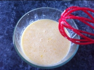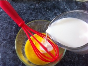 4. In a small bowl, lightly whisk together the egg yolks, then whisk in the milk and melted butter.