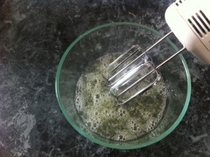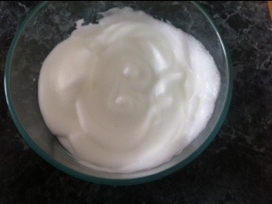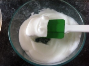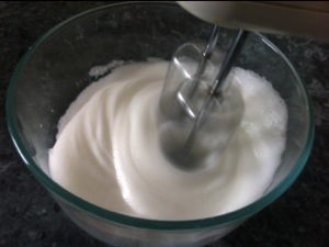 6. In a clean bowl, using an electric mixer on high speed, beat the egg whites until stiff peaks form (but not dry peaks).