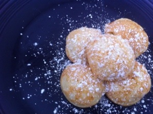 Ebelskivers have a consistency very similar to pancakes, yet they are lighter and more airy; think a popover but not as chewy. My husband has compared them to donuts, and they are the size of donut holes, yet they are not heavy like cake donuts, or as light as say a glazed donut hole. Ebelskivers are their own unique little treat you must try.