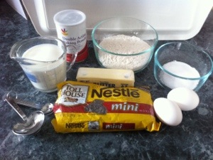 I must confess I didn’t measure the chocolate chips today, I added small handfulls at a time, folded them in, and eyeballed it.