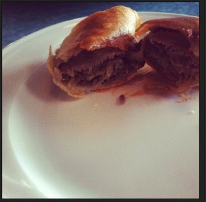 Think of a philly cheesesteak – thinly sliced pieces of steak with melted provolone and grilled onions – and now imagine them inside a crisp, fried shell. This appetizer is the perfect size for one person or for two to share.