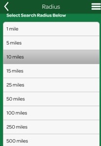 The app also gives you the option to select your search radius from a range of 1 to 500 miles!