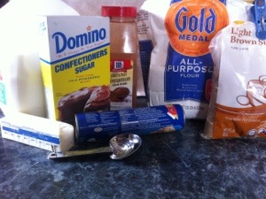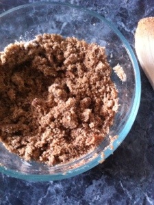1. In a small bowl mix together the butter, slightly melted, cinnamon, brown sugar, and flour.