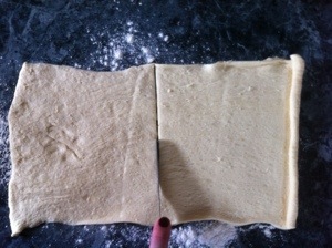 5. Roll the short side of the dough up (I worked from the bottom to the top of each piece of dough).