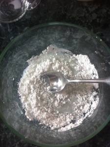 9. Mix powdered sugar with the milk. Add more sugar and milk to get the frosting consistency you prefer. I like to work with 1/4 cup of frosting mixed with 1 tablespoon of milk and then add as I go for a thicker frosting.