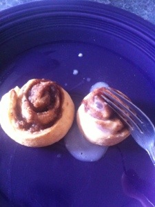 What do they taste like? They remind me of bite-sized pieces of Cinnabon cinnamon rolls without the heavy frosting. They are cinnamony and the primarily brown sugar filling and the  powdered sugar glaze gives the rolls a little extra sweetness. However, the sugary frosting is light so they aren’t as heavy as other cinnamon rolls. I prefer them warm right out of the oven. I think they are a great solution to a cinnamon roll craving when you don’t want to eat an entire cinnamon roll.