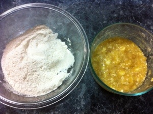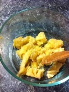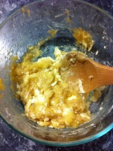 3. Mix butter, bananas, and egg