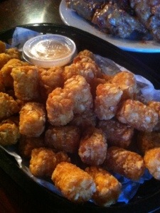 And don’t forget sidekicks for your meal! You have the option of frips (pictured above with the burger, which are a combination of potato chips and fries) or tater tots. They have tater tots!! I adore tater tots and if a restaurant has them I’m ordering them. Dew Drop’s tater tots are classic tots served with a tangy southwestern dipping sauce that you will be sure to love.