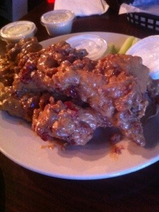 I was hesitant at first, but my husband was talking about them for DAYS and he isn’t obsessed with peanut butter the way I am. Also, when several waitresses recommended the PB&J n’Fluff wings during my first visit I just knew I had to try them.