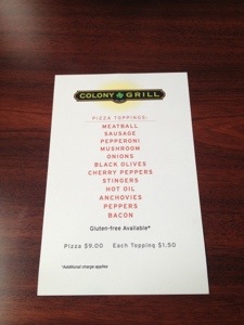 Looks delicious, doesn’t it? Say hello to Colony Grill’s bacon and sausage pizza! Colony Grill, Milford is now open and serving their famous thin crust pizza! We went down for lunch the other day to give it a try, and the Milford location delivers the atmosphere and quality pizza you expect to find at Colony Grill.