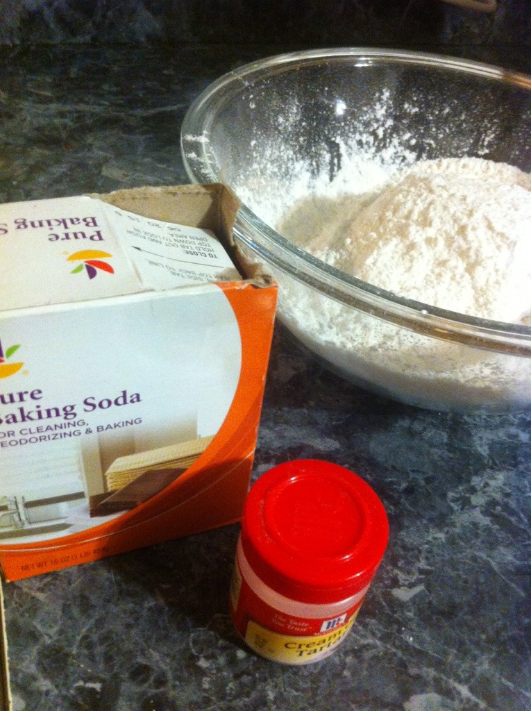 2. Combine flour, cream of tartar, baking, salt. Set aside.