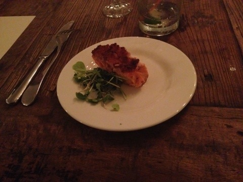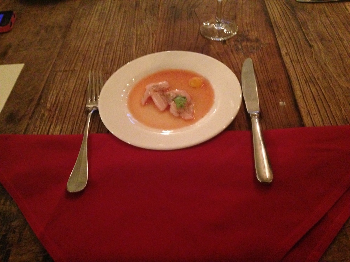 Our tasting began with the delicate scallop crudo. The scallops were extremely fresh and sliced thin. Presented in blood orange juice with micro greens, the scallops taste of citrus with a hint of cilantro and black pepper. If you do not prefer a distinct taste of scallops this dish is for you since the strongest taste is the lovely blood orange juice.