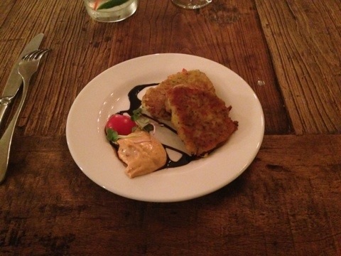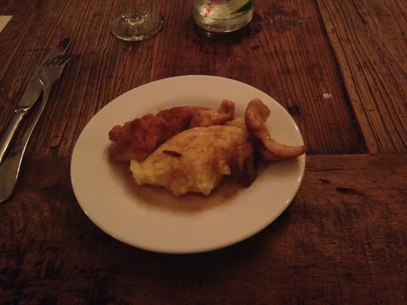 My favorite course of the evening were these Garden Vegetable Fritters. If this item is on the menu you must, must, must order it! A winner of a James Beard Foundation Award, the Garden Vegetable Fritters are made of shredded zucchini and squash and a little garlic, onion, salt, and flour (to bind all the ingredients together). The fritters are pan fried with basil olive oil for a crispy texture on the outside and a softer texture inside somewhat reminiscent of the consistency you’d find in a potato pancake. However, these vegetable fritters were not greasy at all, rather they are light and flavorful. Presented on a balsamic reduction and accompanied by a housemade aioli with a lovely smoky flavor to it with just a little heat, these fritters will make you want to order a second round.