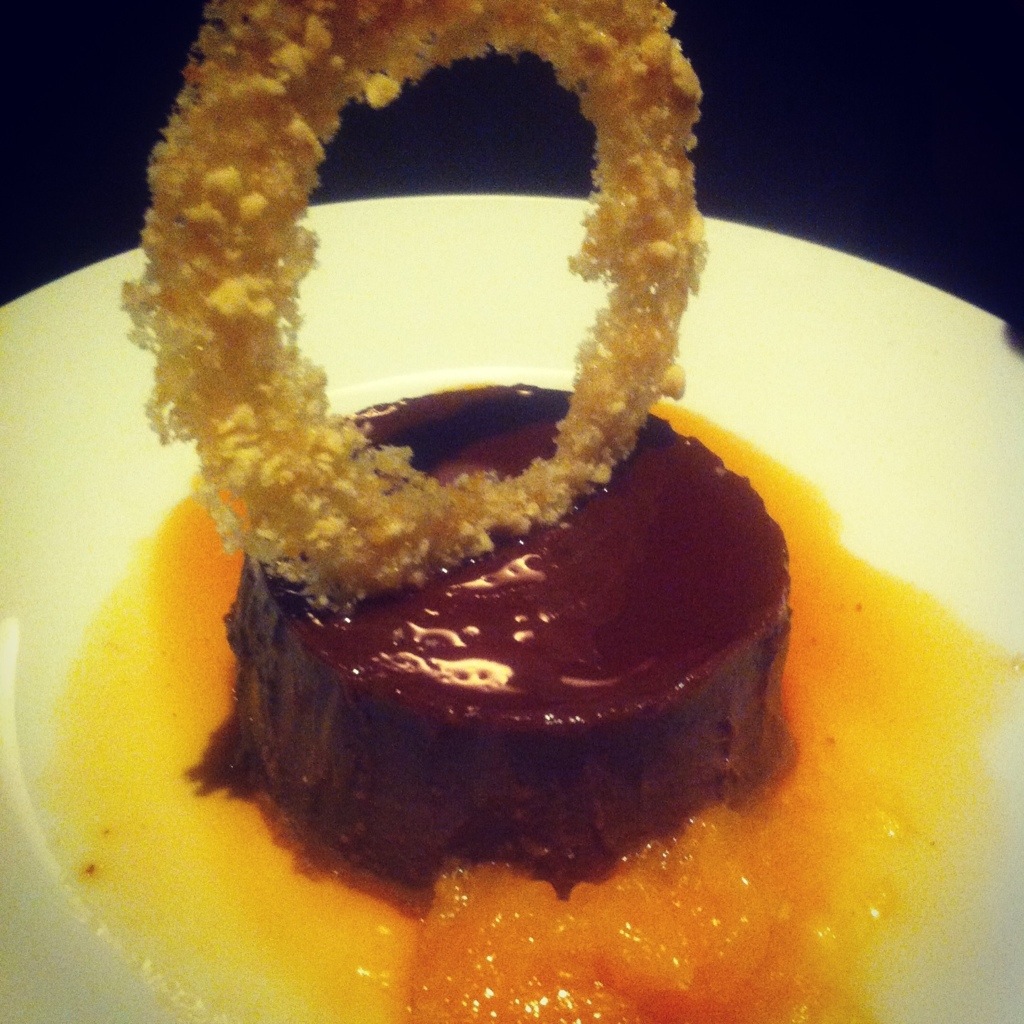 Garnished with an Almond Florentine and presented on top of Tuaca Fired Oranges, the Chocolate Flan is a little firmer than a traditional flan and reminded me more of a chocolate mousse in texture and flavor. The orange and chocolate flavors compliment one another and the crunchy texture of the almond florentine highlights the smooth, creamy texture of the flan.