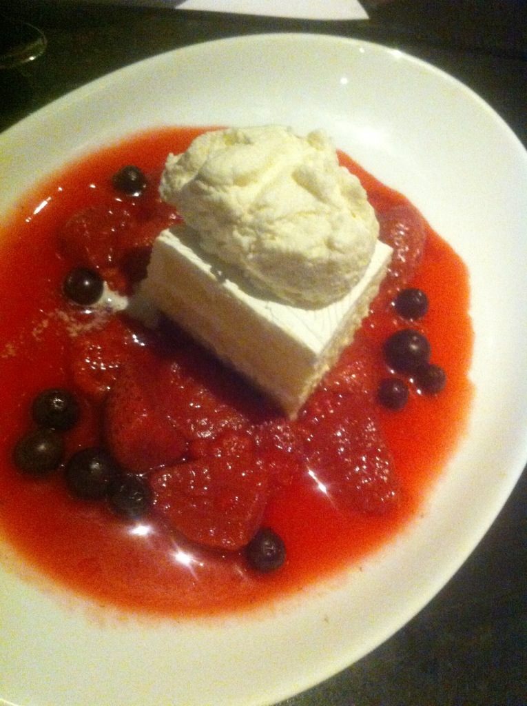 Oh, how I adore Tres leches, and the Tres Leches at Post 154 has made my list of favorites. The trick with Tres Leches is that the sponge cake must be a careful balance of three types of milk used in the baking process creating a texture that is distinct to this cake. The cake in Tres Leches is not soggy as you’d expect, instead it is moist, yet fluffy. Served on top of a wild berry stew, the Tres Leches at Post 154 is light and the berries serve to add another layer of sweetness to the cake.
