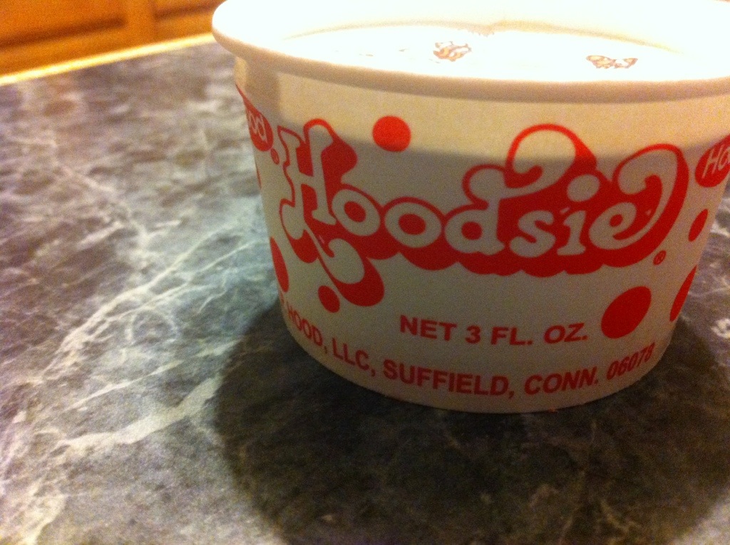 If you grew up in New England then you surely recognize this little ice cream cup. Some people call them “dixie cups” and others call them “(little) ice cream cups,” but most people know them by their name: “hoodsie”.