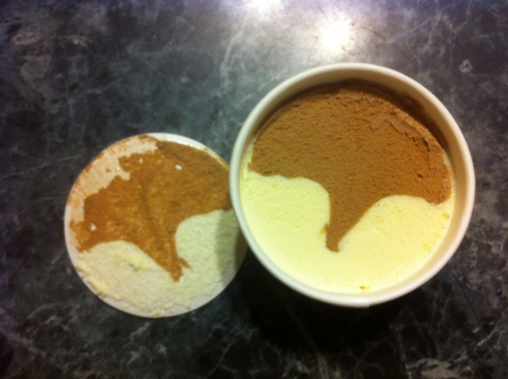 The sundae cups are vanilla ice cream with chocolate fudge or strawberry topping, and the traditional cups are half chocolate ice cream and half vanilla. Aside from the novelty and childhood nostalgia, what I like about hoodsies is that you’re getting a classic chocolate and vanilla ice cream in a portion controlled container. At 100-120 calories per cup, depending on the flavor, this is totally a win-win snack!