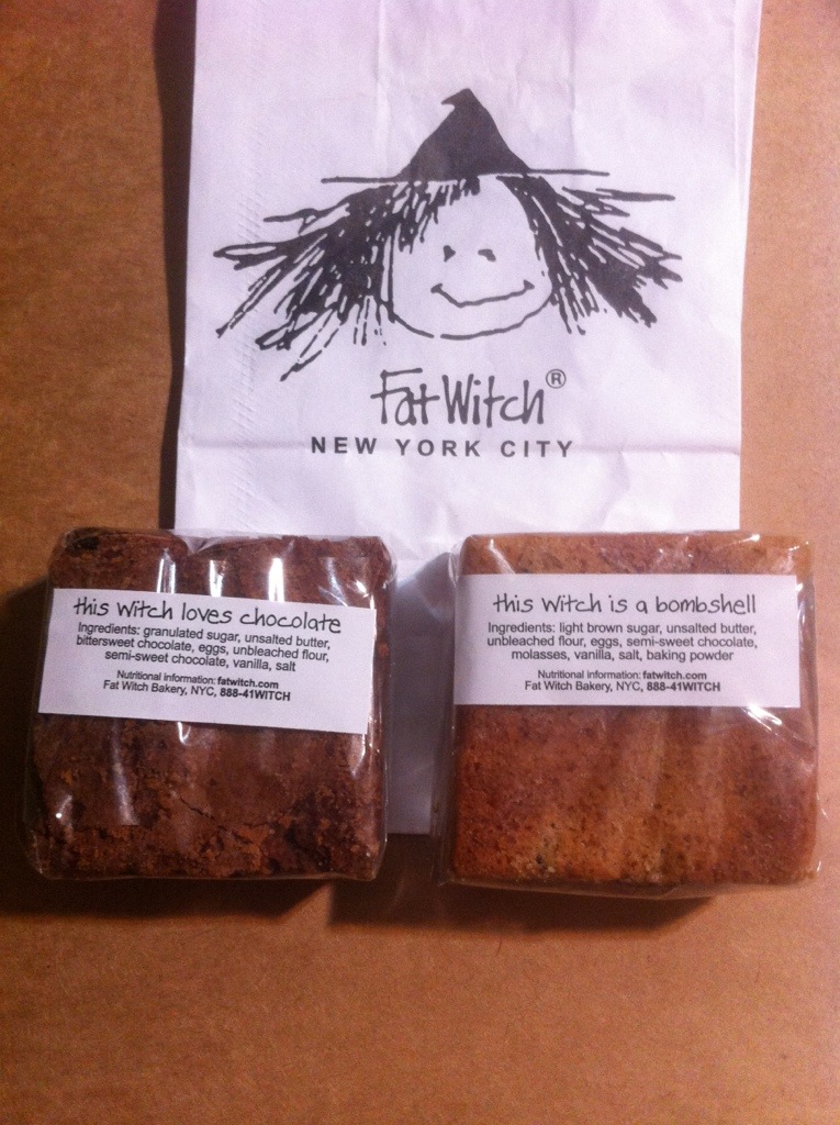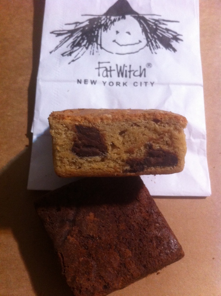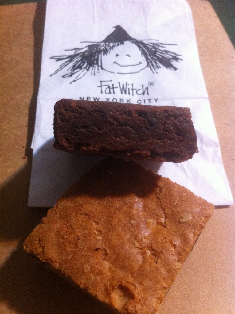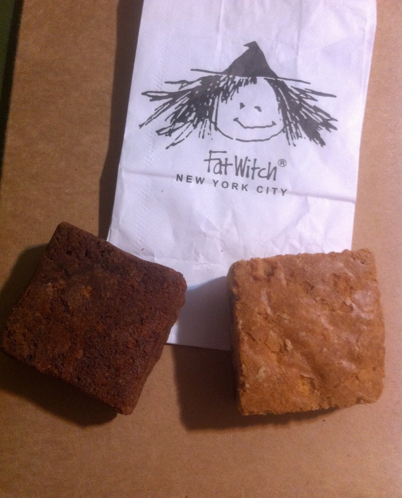 In honor of one of my favorite sweet treats and National Chocolate Day, which happens to be today, I must tell you about these classic and very excellent brownies and blondies we found in New York City. My husband and I visited NYC the day after Christmas to see the Rockefeller tree, have lunch, and explore Chelsea Market. In Chelsea Market we discovered Fat Witch Bakery, a bakery that sells brownies and their brownie mix.
