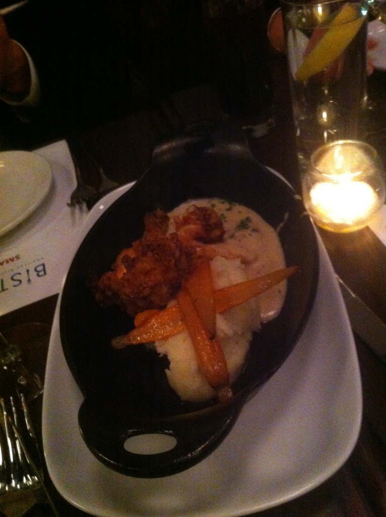 If you’re looking for somewhere different to order Chicken Fried Chicken, look no further! The fried chicken at Bistro B is delish! Made with crispy amish chicken breast, black pepper gravy, cinnamon spiced baby carrots and served over mashed potatoes the Chicken Fried Chicken the dish is flavorful and the fried chicken is not greasy. This dish was a hit with our entire group.