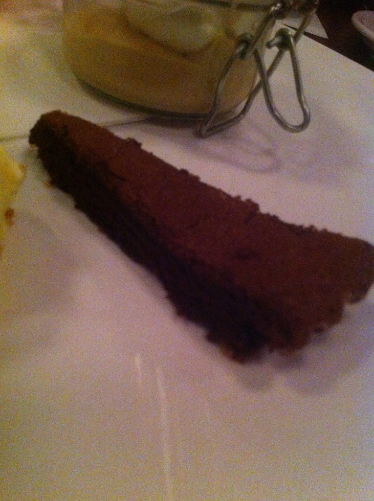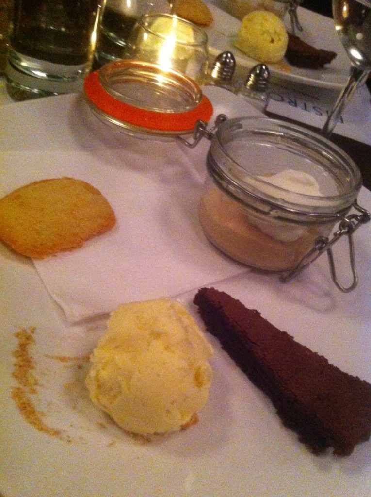 Our final course of the evening was dessert, aka the sweet plates. For our sweet plate we tried four items: Butterscotch pudding, Flourless Chocolate Cake, a Madeline, AND Vanilla Bean Ice Cream.