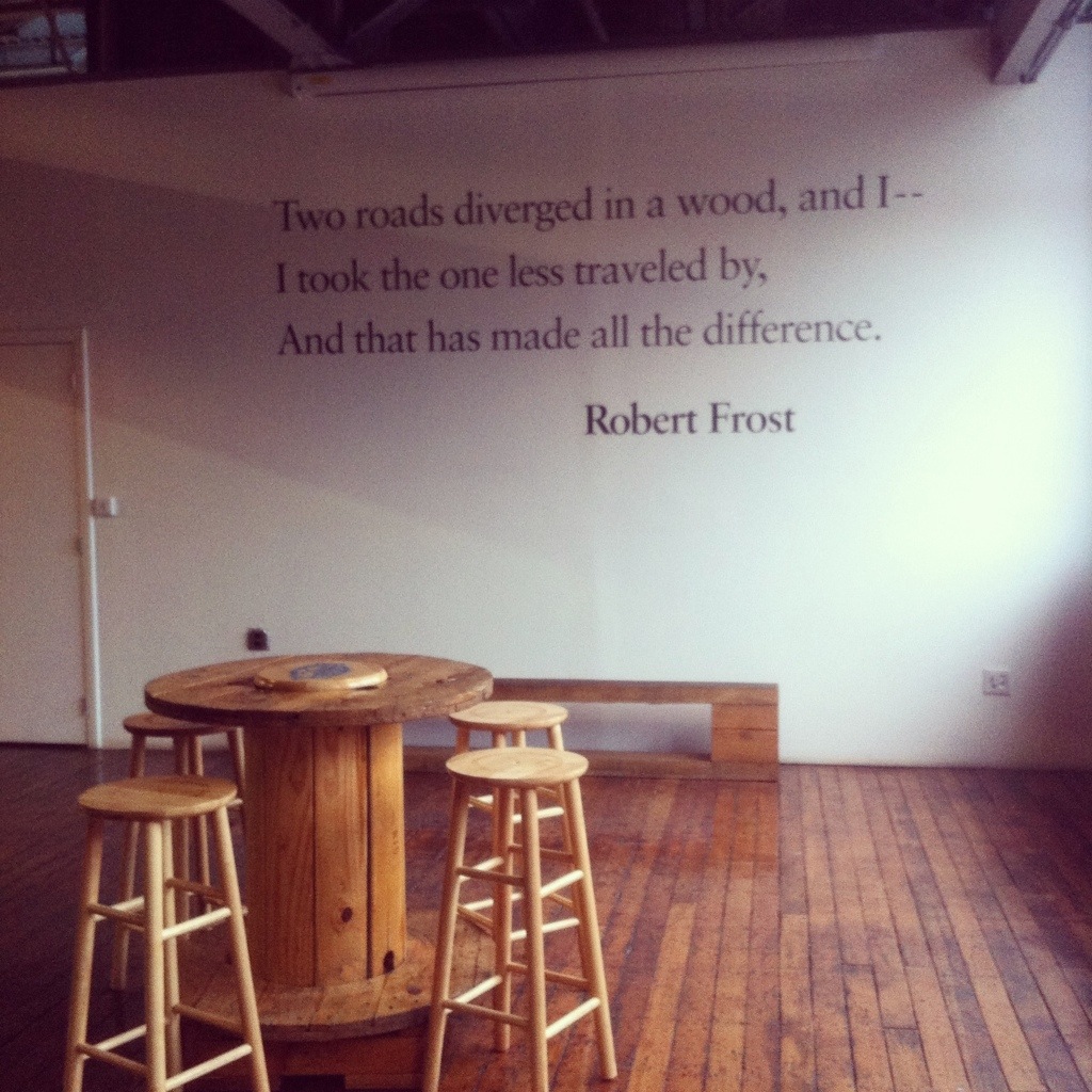 These words are typically encountered in English class and sometimes you might hear them in graduation speeches, but the last place I bet you’d expect to find them is in a brewery. Frost’s famous lines have inspired countless people, including the people at Two Roads.