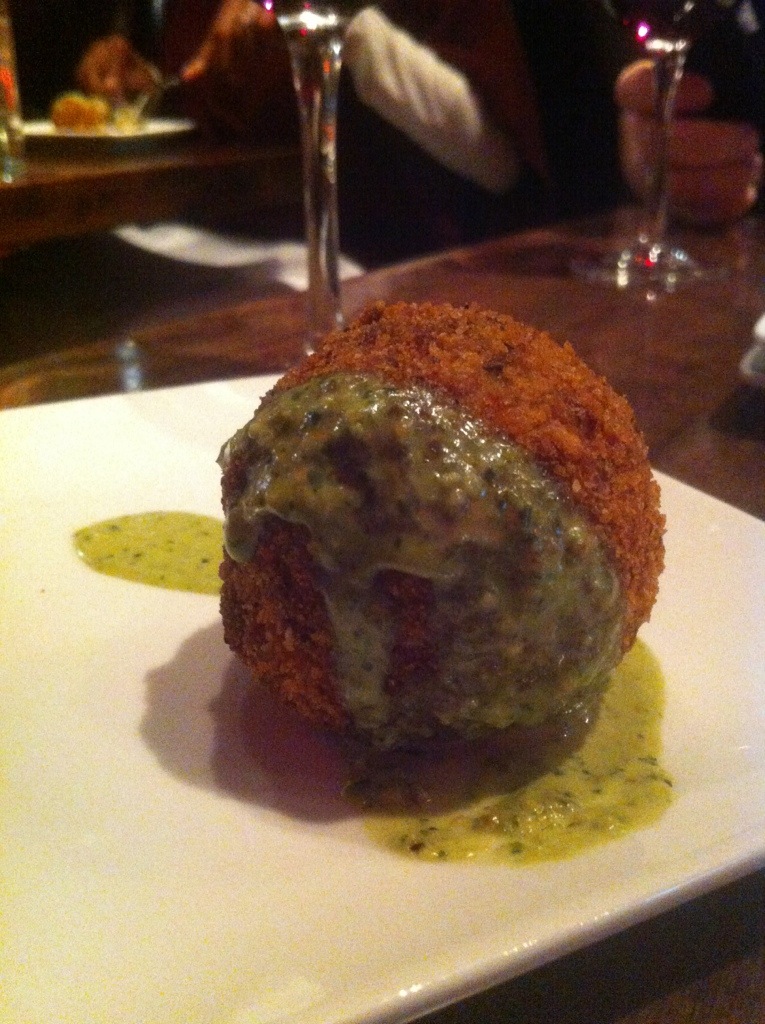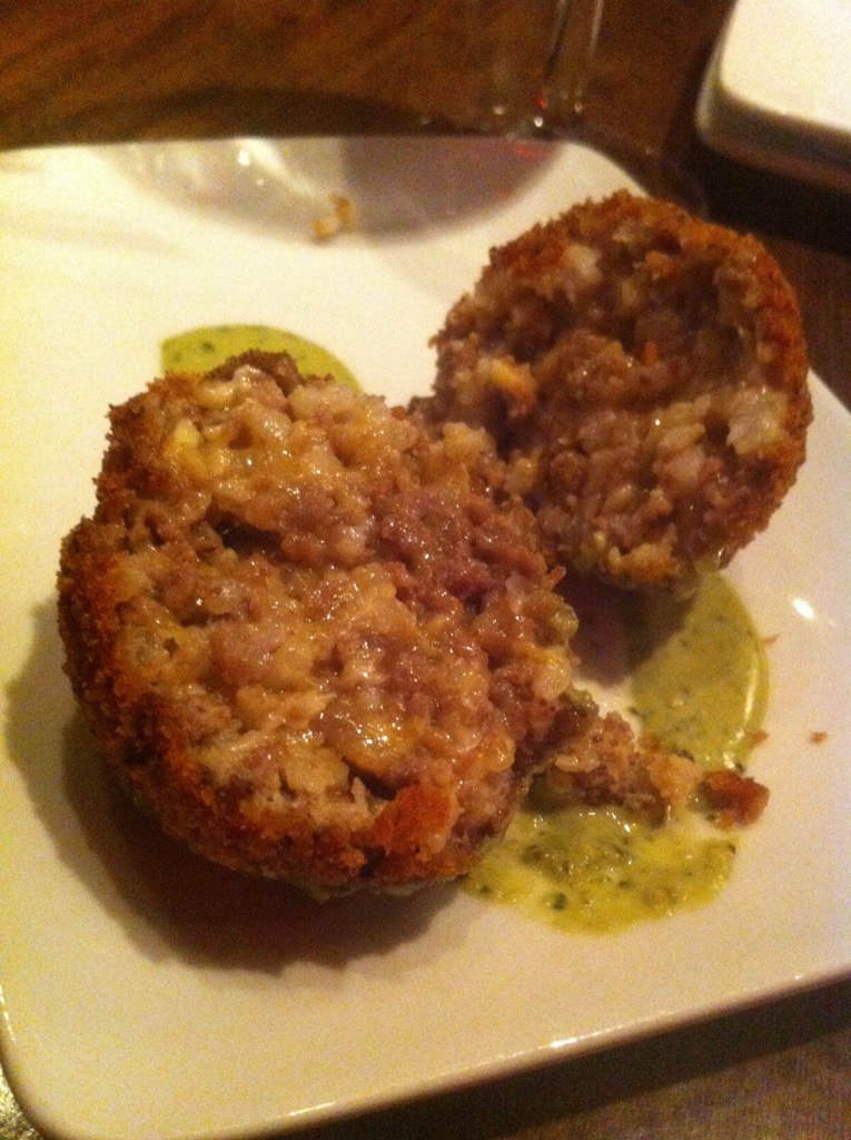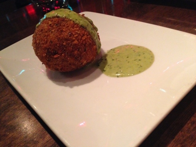There is a story behind these risotto balls, or arancini balls as they’re also known, and you know I always love a good story about food. The owner Breno Donatti shared with us that during a recent trip to Italy he was able to experience an arancini bar, and when he returned from his trip he asked Chef Tony to create an arancini ball for the menu.