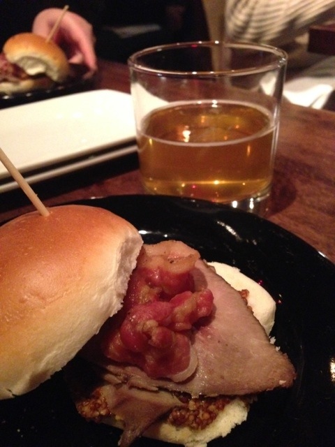 These are, by far, some of the most unique sliders I’ve ever eaten. A very fresh slider bun is coated with a grain honey mustard on the bottom and then piled with duck and a slice of proscuitto. Paired with Two Roads Workers Comp Saison Ale, I was pleasantly surprised at how well the duck, proscuitto, and mustard complimented one another. The Workers Comp Saison Ale by Two Roads Brewery also added another level of flavor to this course.