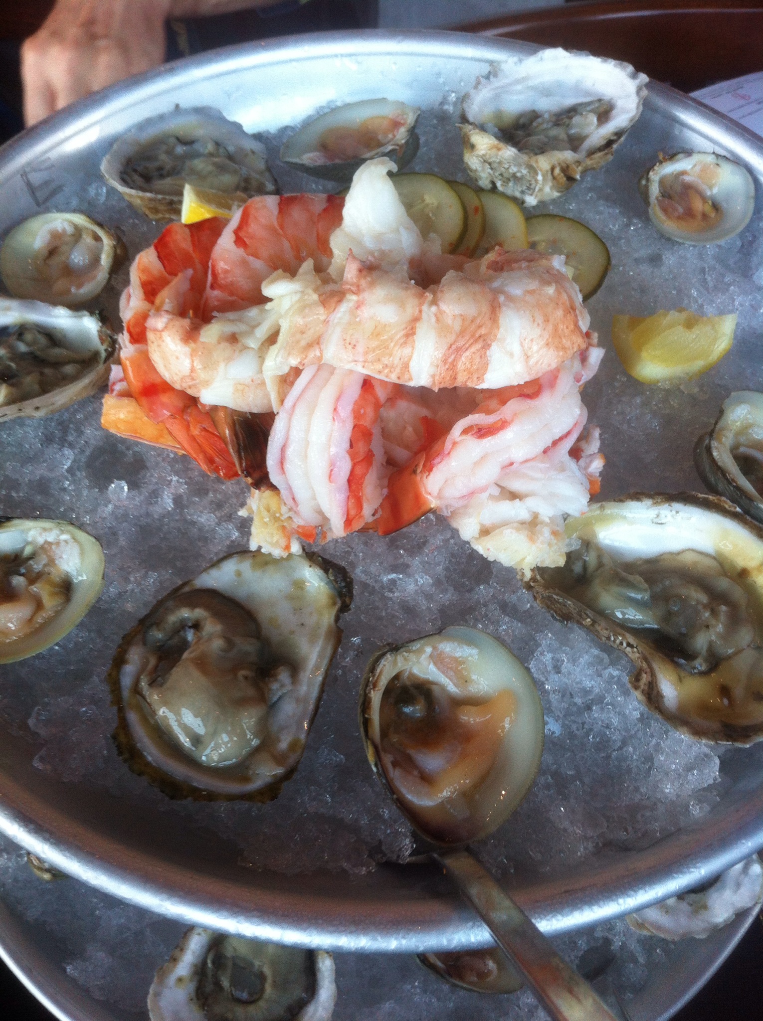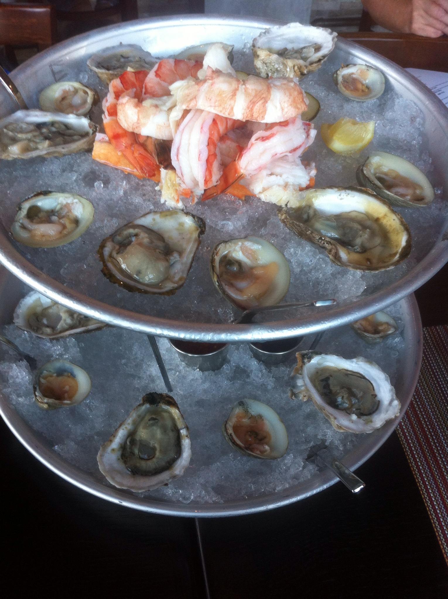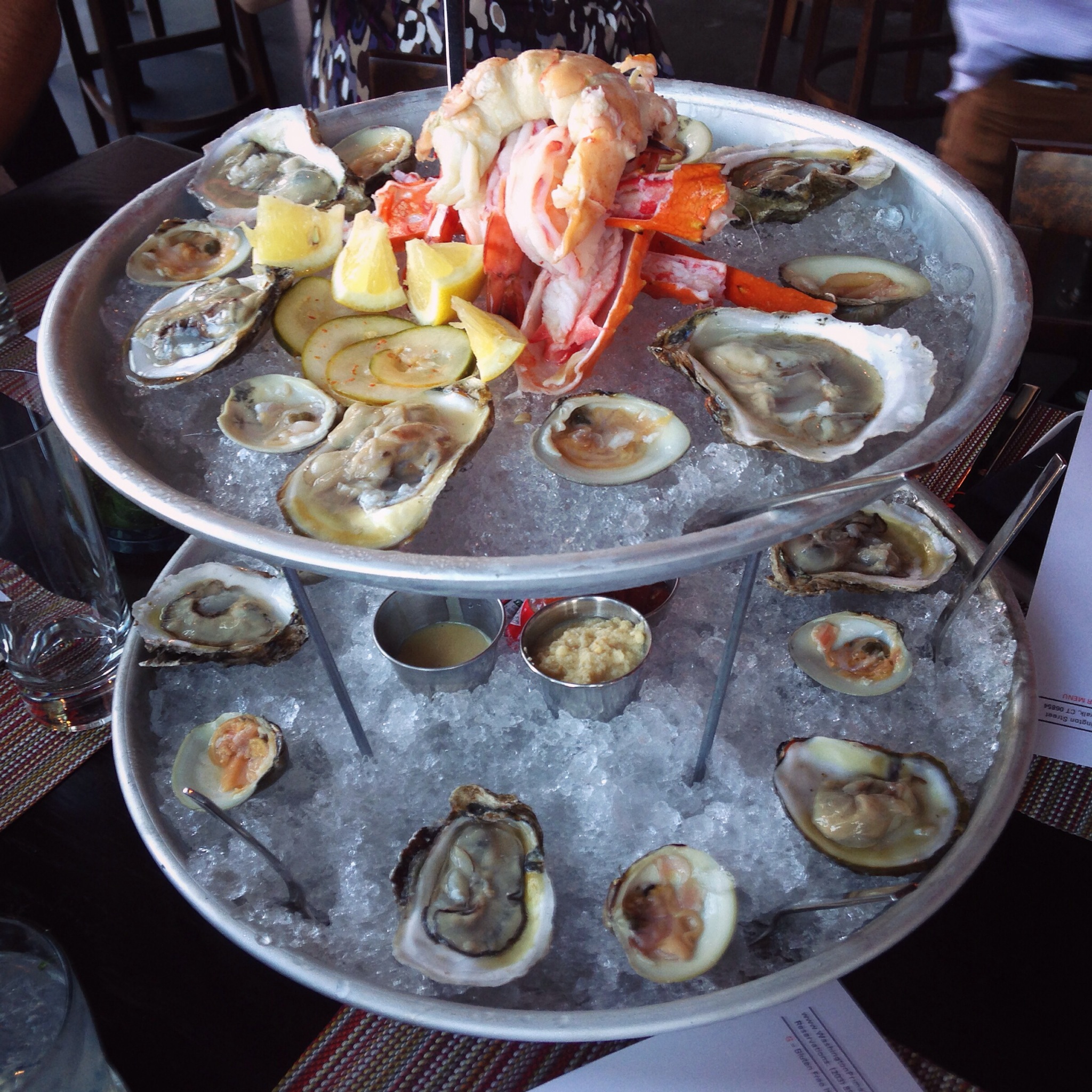 We began our dinner with a Seafood Tower comprised of colossal shrimp, local oysters, little necks, Alaskan king crab legs, Maine lobster served with spicy mustard, house cocktail sauce, and classic mignionette.