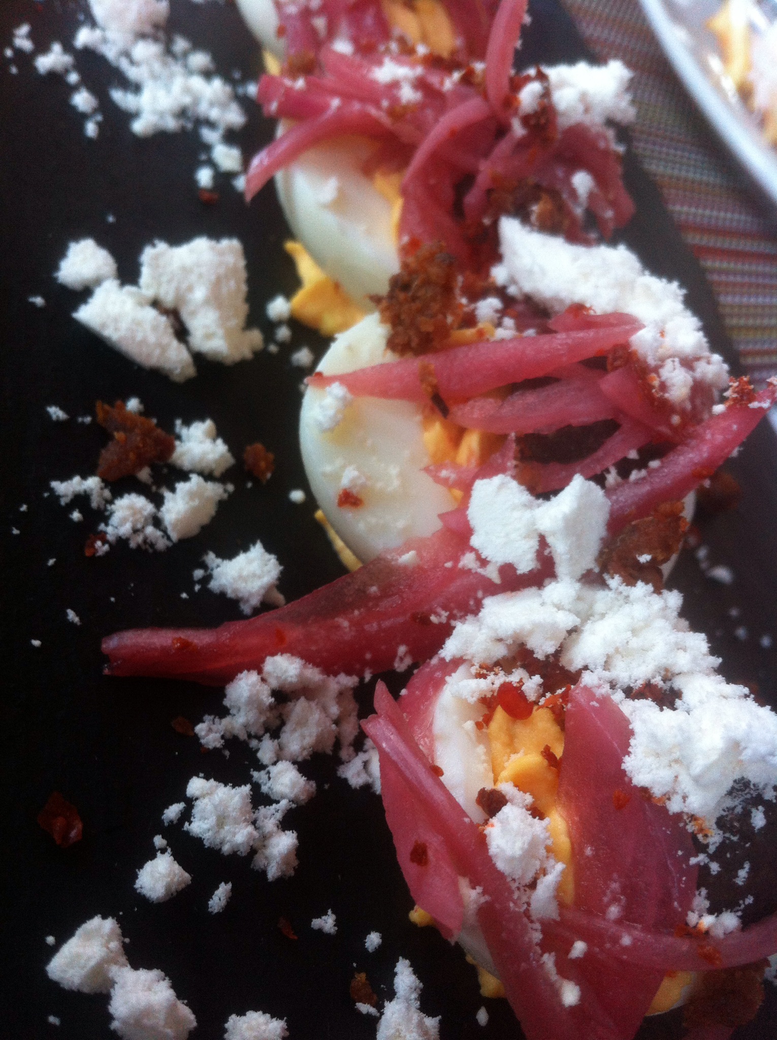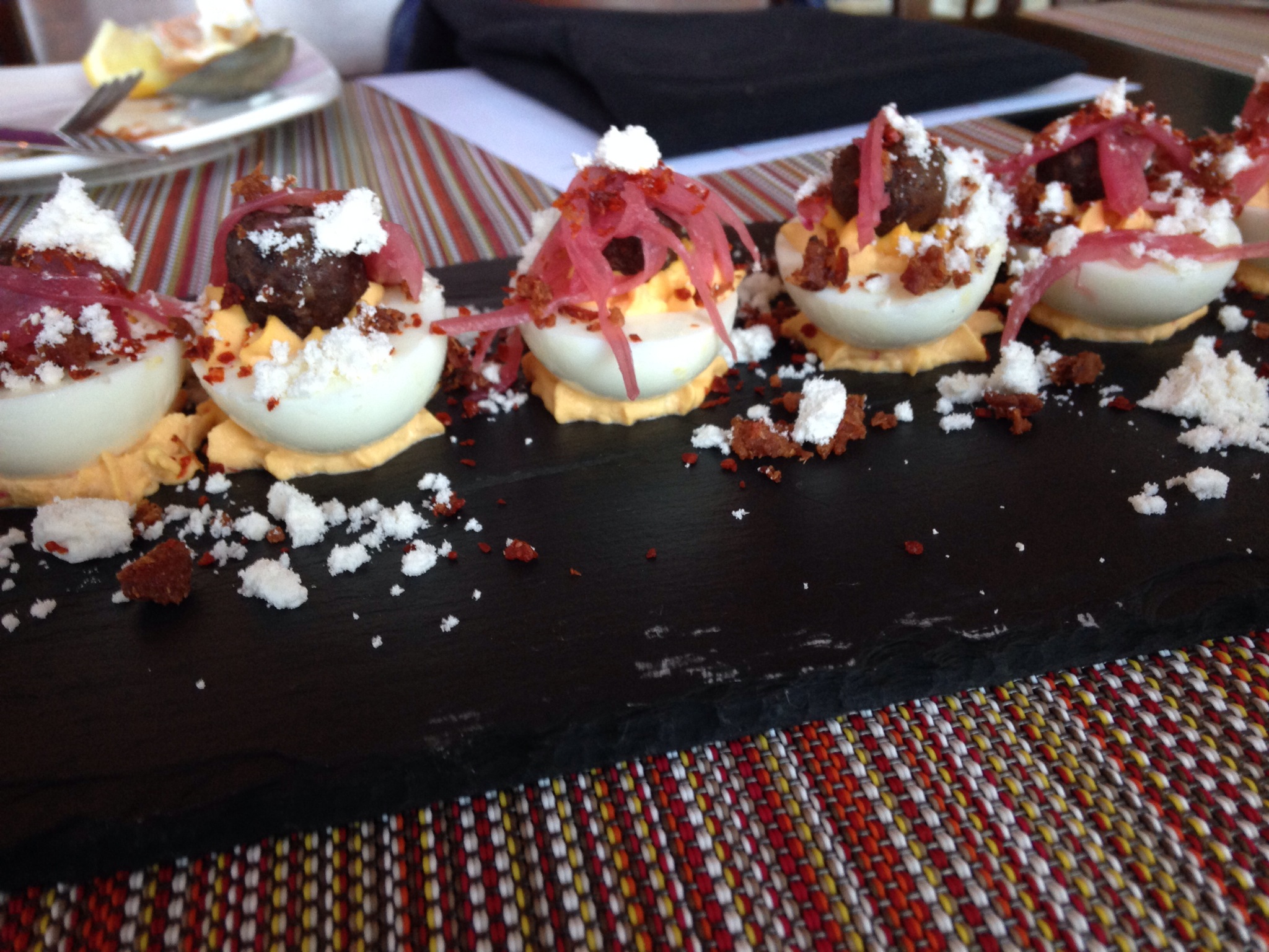 Deviled eggs are an item I noticing more and more on restaurant menus, but I have to point out that what makes the deviled eggs unique at Washington Prime is the addition of the mini meatball and fois gras powder. That’s right, these deviled eggs are made with a creamy yolk, a prime mini meatball, pickled onions, and fois gras powder. I should also add that this appetizer, like so many we tried at Washington Prime, is gluten free.