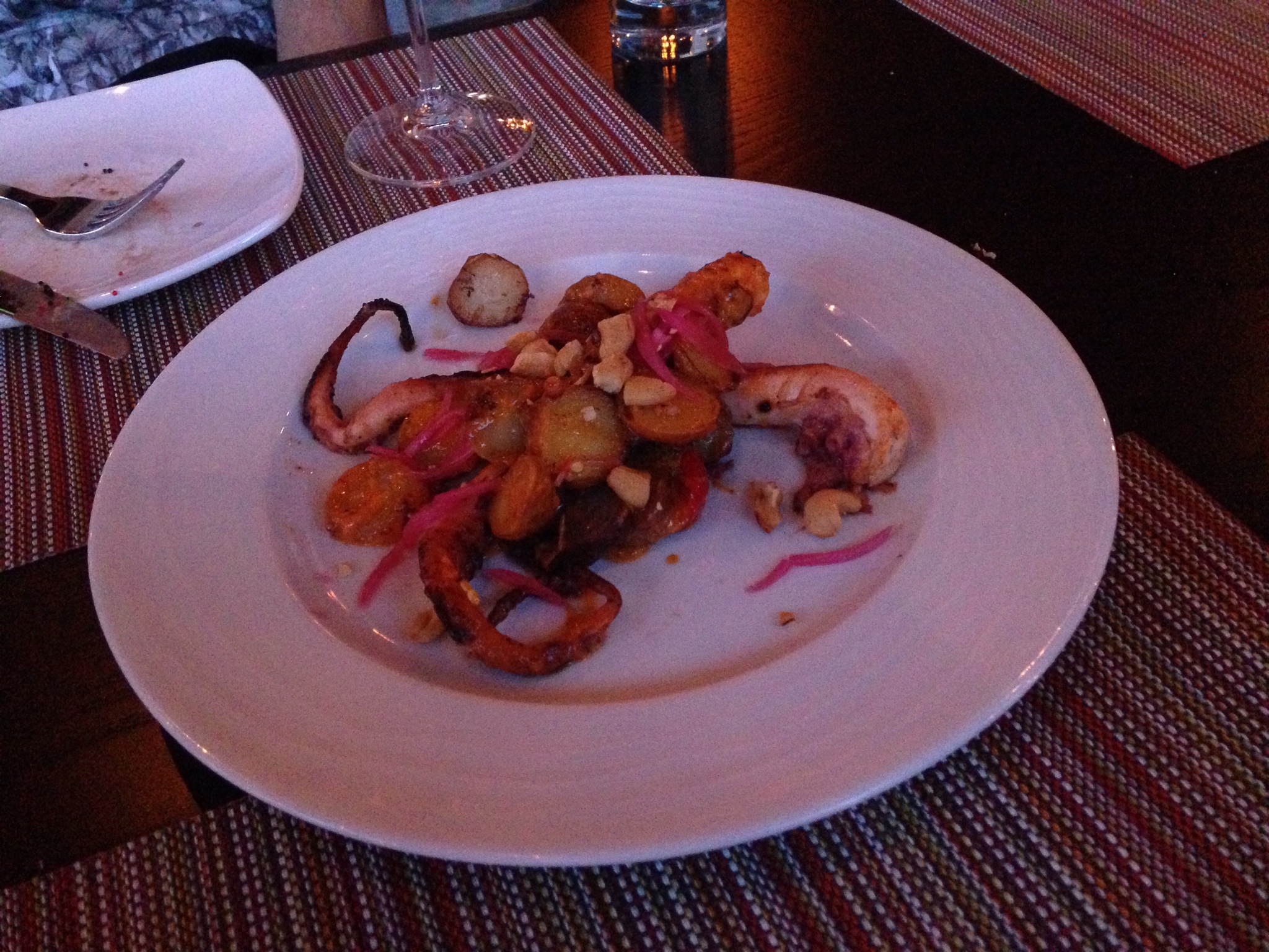 Octopus is quickly becoming one of my favorite things to eat and the Octopus at Washington Prime makes my list of favorites. Pickled peppers, duck fat marble potato, and a pepper emulsion comprise this dish along with perfectly cooked octopus.