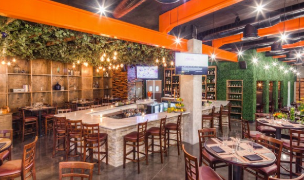 The large glass windows, clean brick façade with a pop of orange in the outdoor seating and bold lettered sign outside grabs your attention and beckons you to go inside.