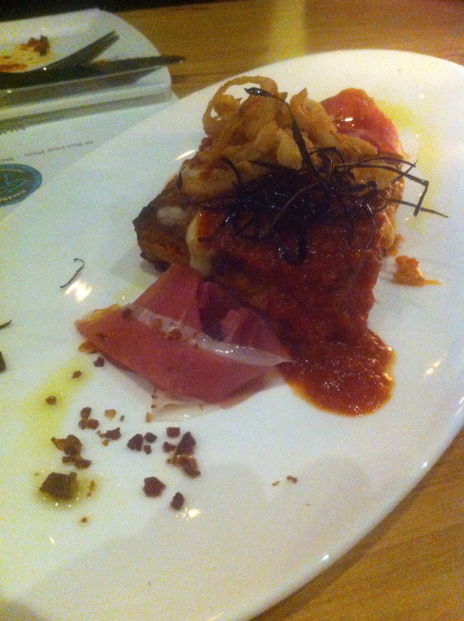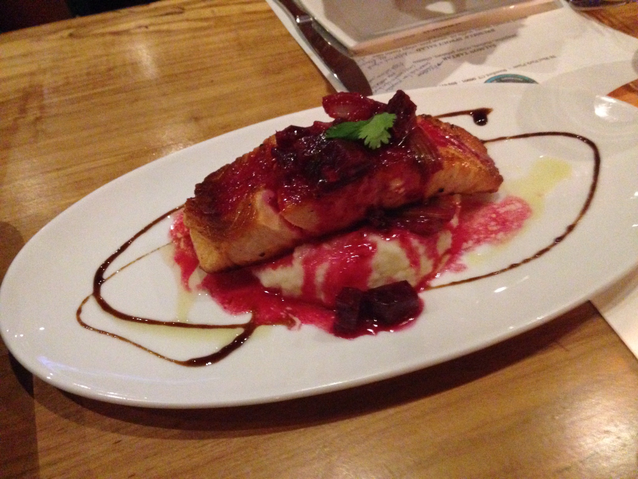 I went into my first bite slightly biased since I don’t really like horseradish, however I have to say that I was pleasantly surprised and the dish was popular with our group. The salmon is cooked perfectly and the flavors of the horseradish, beets, and celery pair nicely with the salmon and the potatoes.