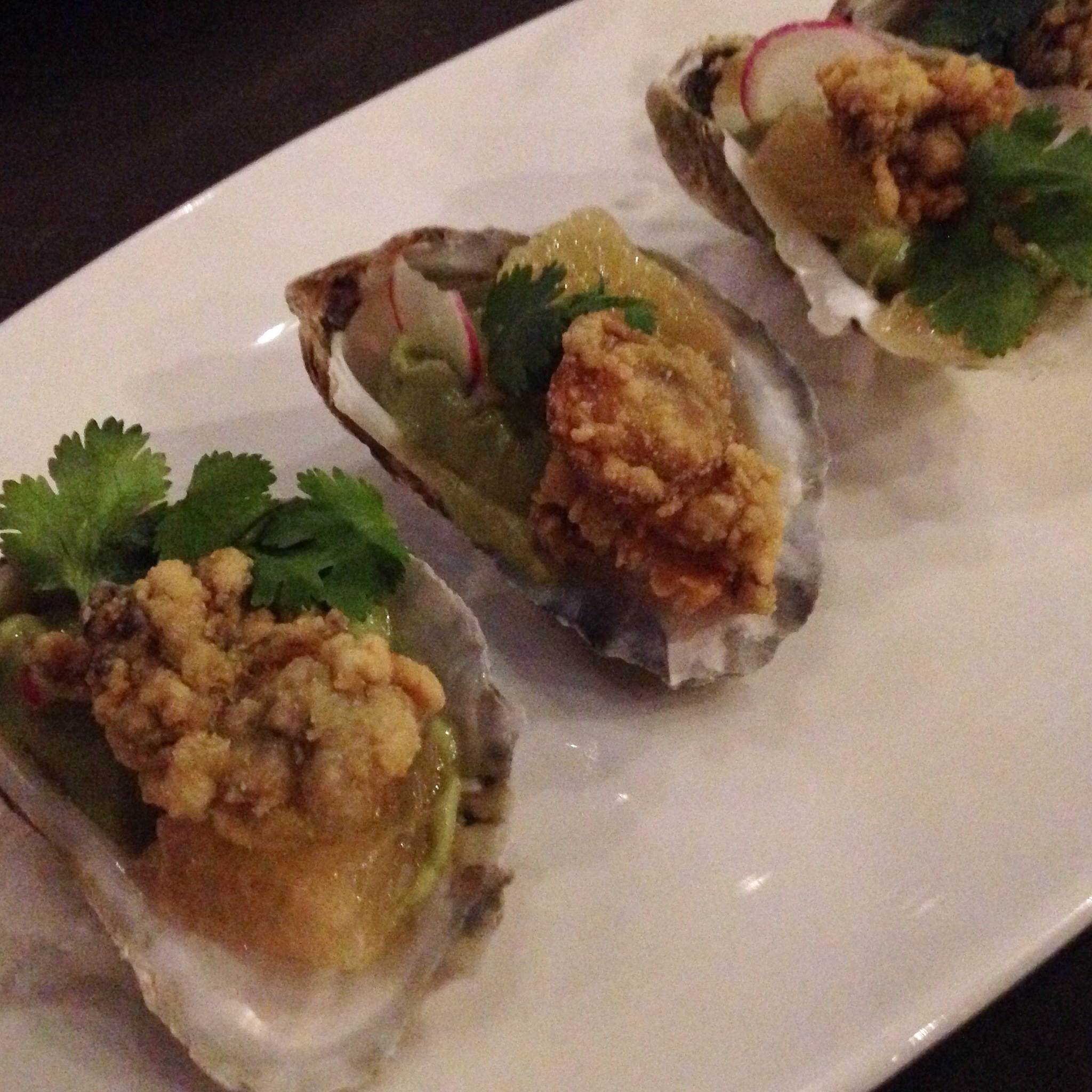 Gastro Bar’s crispy oysters are uniquely served over an avocado puree topped with grapefruit and radish.