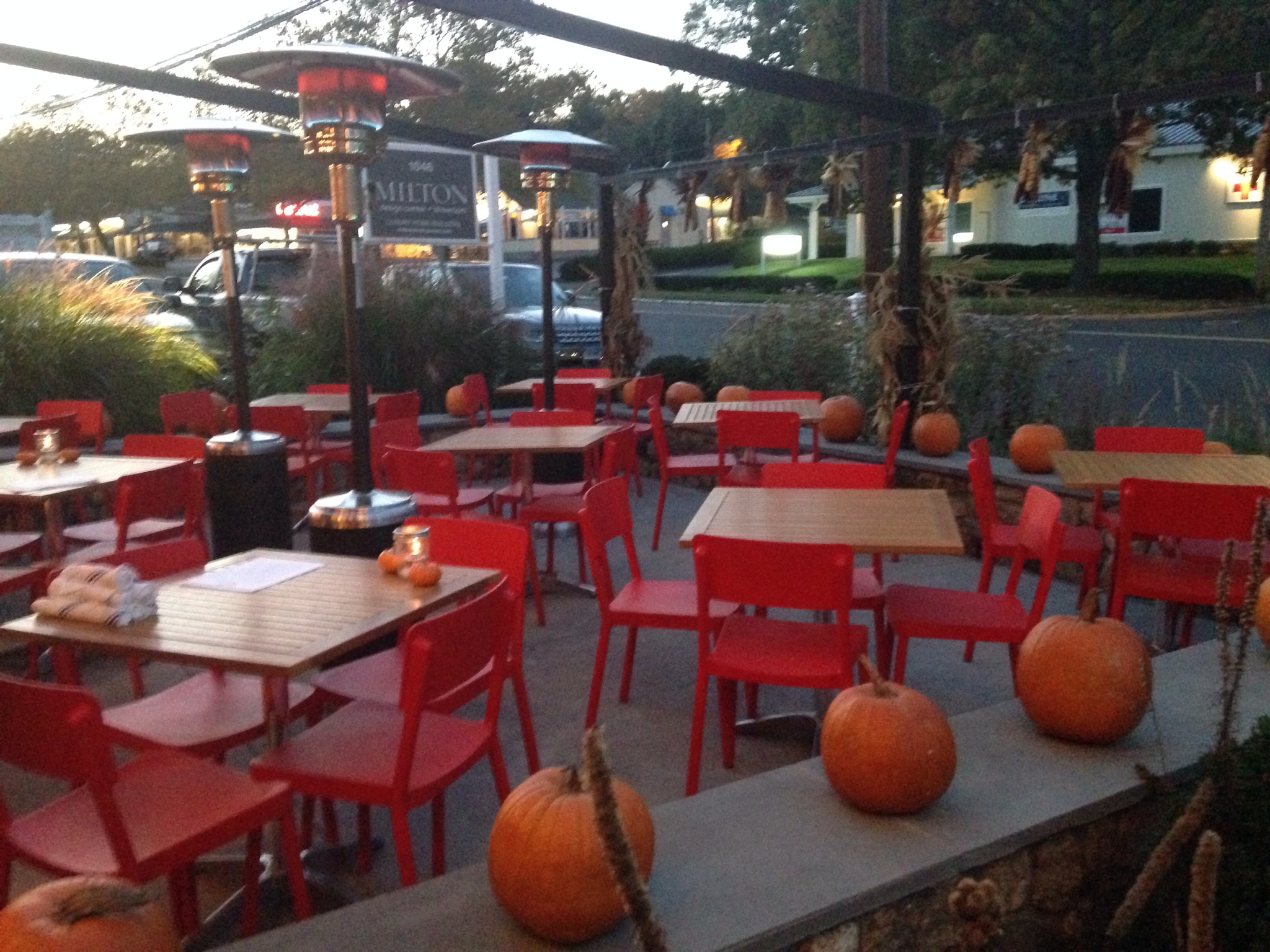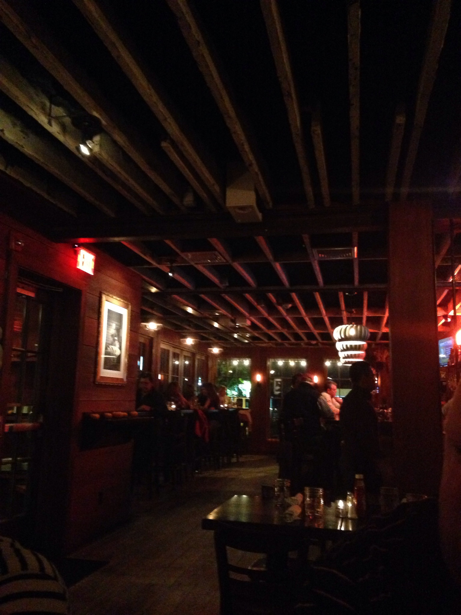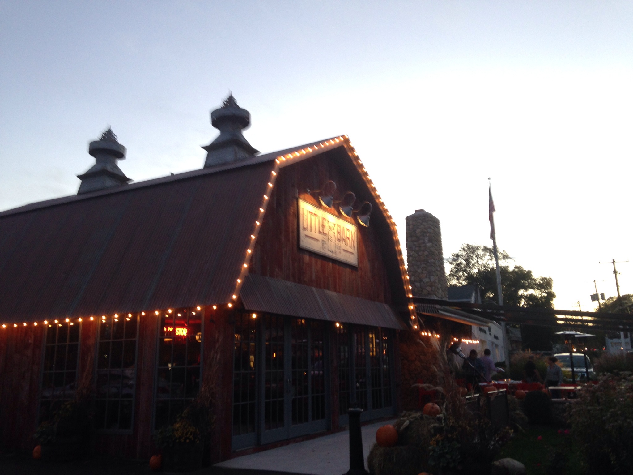 The decor at Little Barn reminds me of quaint and cozy barns you might find in Vermont that have been reclaimed and renovated. Distressed wood on the outside of the restaurant is continued throughout the inside on the floors and walls, and exposed beams in the ceiling creating a warm environment full of character and charm. A bar area with hightop tables and a more traditional dining area, along with an outdoor patio, offer a variety of dining areas perfect for anything from a cocktail to a full meal. The two rustic stone fireplaces add the finishing touch to the indoor and outdoor dining areas.