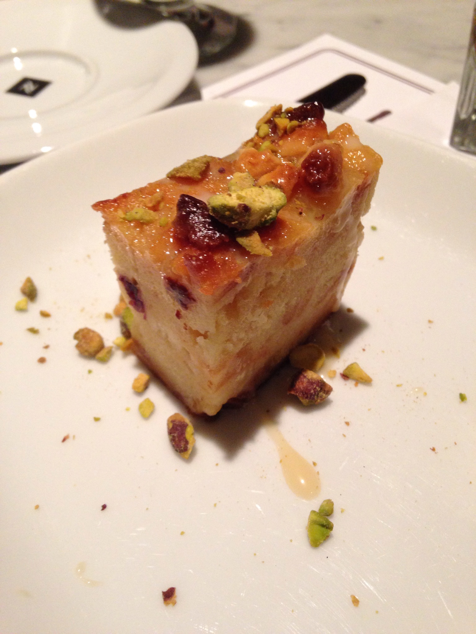 Can we talk about the bread pudding? First, I should say that I am not a fan of bread pudding. It’s usually soggy and too eggy for me, but every once in a while someone makes a bread pudding that makes me like, no love, bread pudding. Clara has succeeded in making me love not just pizza but bread pudding at Brick + Wood. White chocolate and cranberry bread pudding with vanilla sauce and salted pistacios are combined to make this bread pudding which is slightly on the heavy side enabling it to avoid becoming soggy despite the vanilla sauce on top.