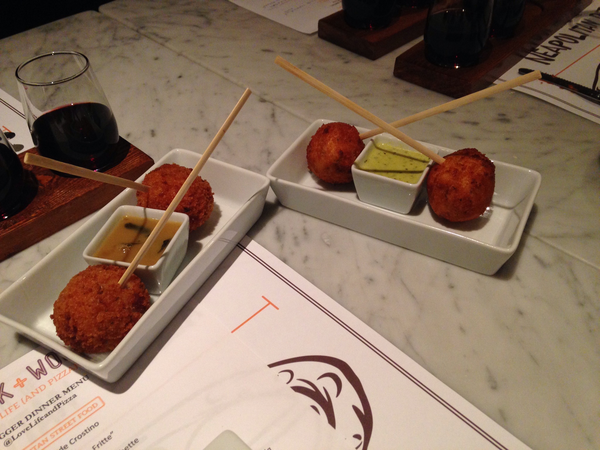 With so many wine options it can become a little overwhelming unless you are quite the wine connoisseur and so I’d suggest trying a wine flight so you can sample a few. The wine flight is fun by itself or with some food. We had ours with some starters or Neapolitan “Street Food”!