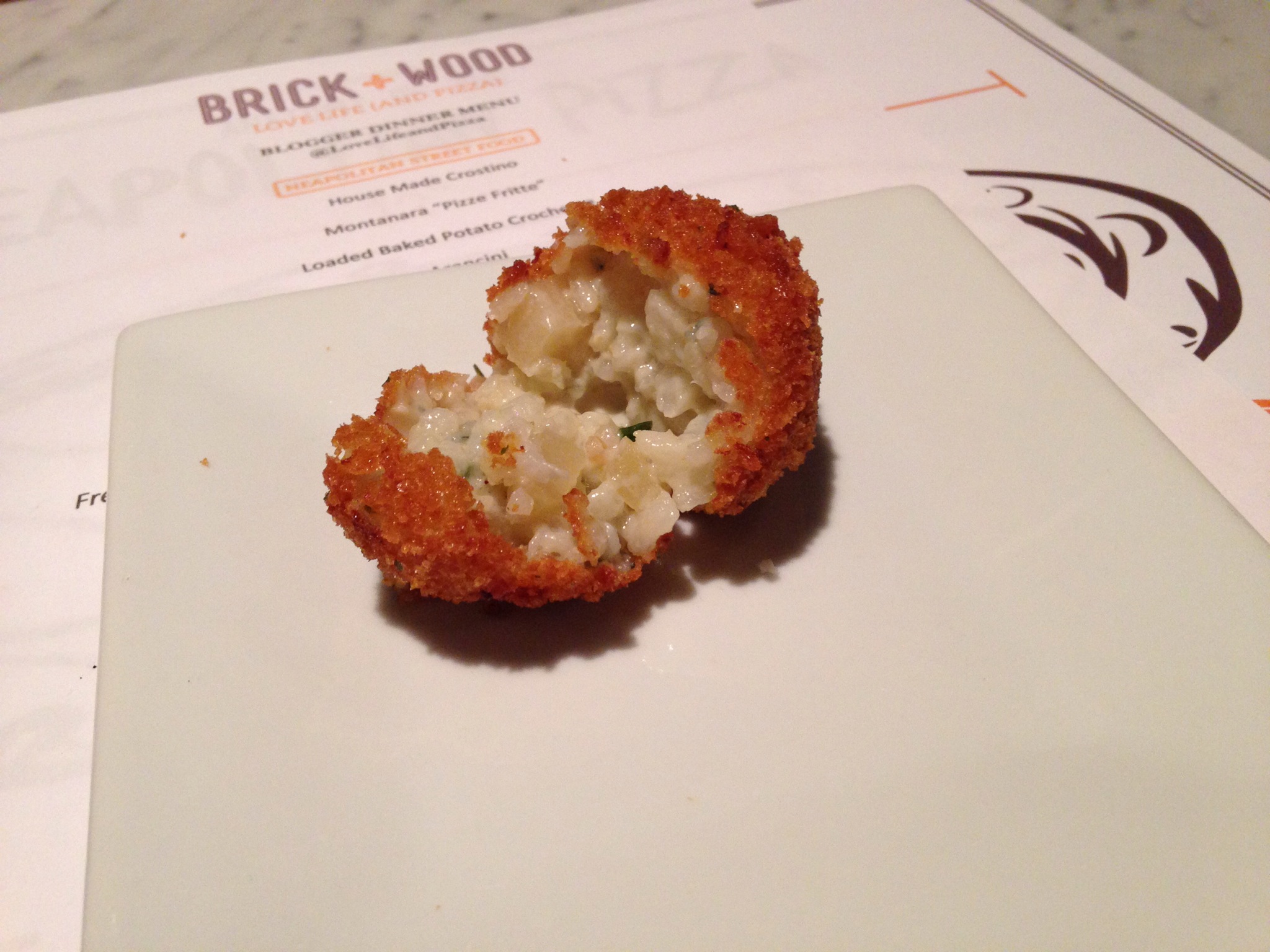 Arancini balls are another must-try at Brick + Wood! We sampled two kinds: Bacon Jalapeño made with fontina cheese and served with a jalapeño dipping sauce, and Pear Gorgonzola which is served with a brown sage sauce (butter, brown sugar, and sage).