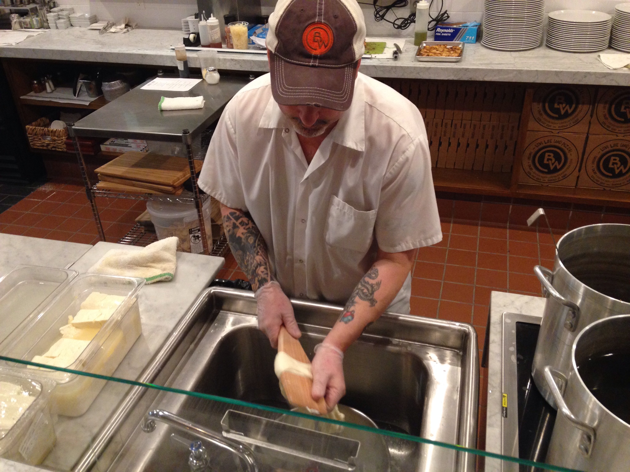 Mozzarella, burrata, and more is made throughout the day at Brick + Wood. Hand-pulled right in front of your eyes you can enjoy the freshest cheese in a variety of creative combinations from Caprese to Truffle Burrata ($10-15) and include imported dried and cured meats such as capocollo, mortadella, prosciutto and salami which are thinly sliced to order.