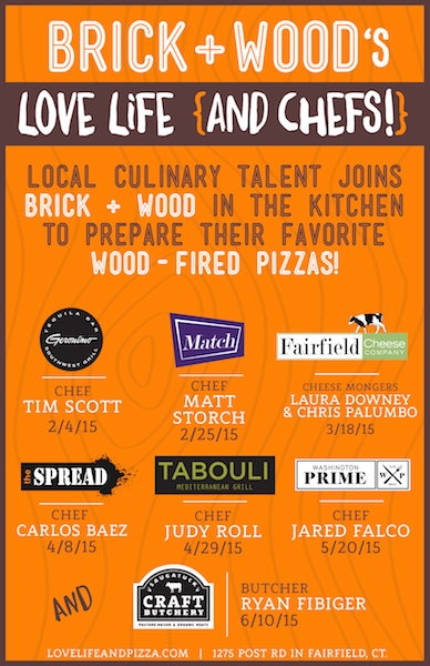 Brick + Wood in Fairfield (read more about my wonderful dining experience here), the newest Italian restaurant known for their Neapolitan pizza and wine-on-tap bar, is pairing up with some very talented local chefs to create some unique pizzas! Throughout 2015, Brick + Wood will showcase a unique pizza created by a neighboring chef to be served on one specific night and tonight is the FIRST night!