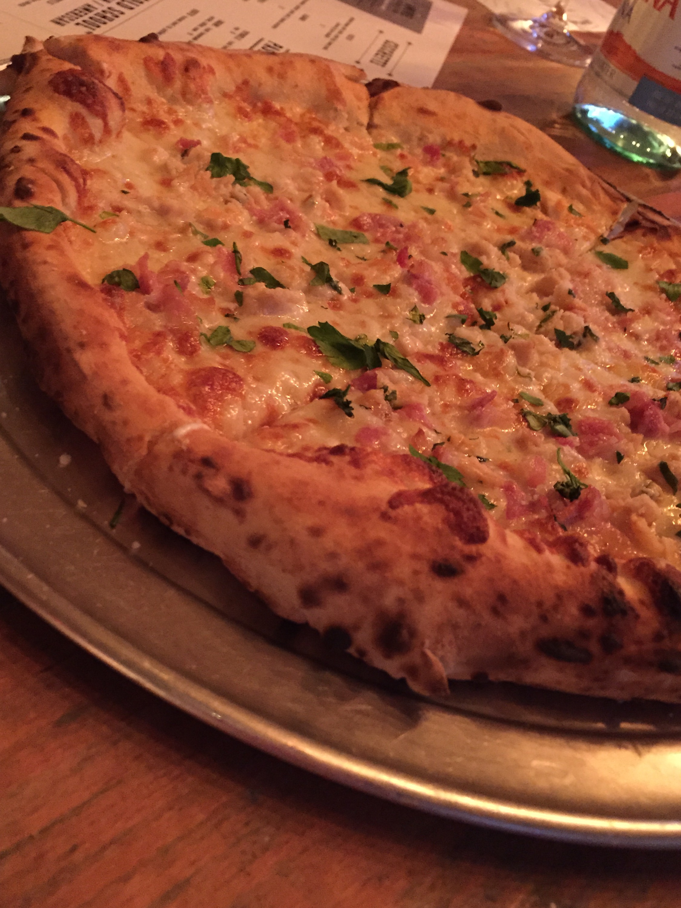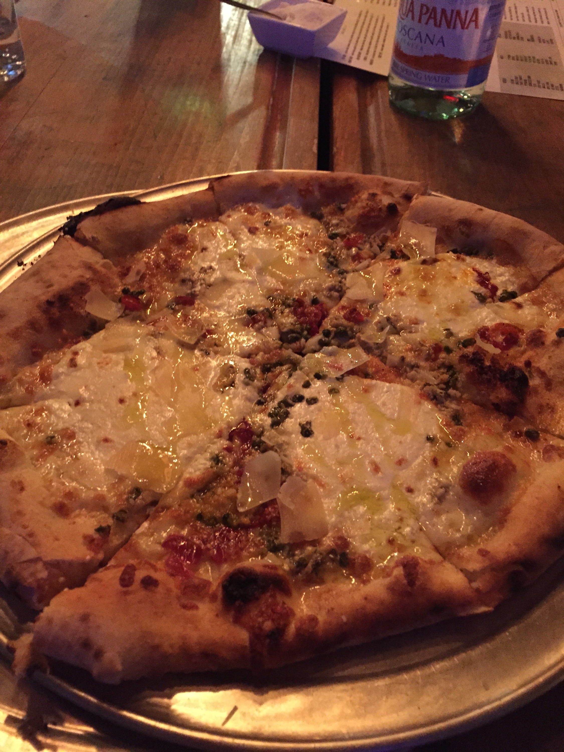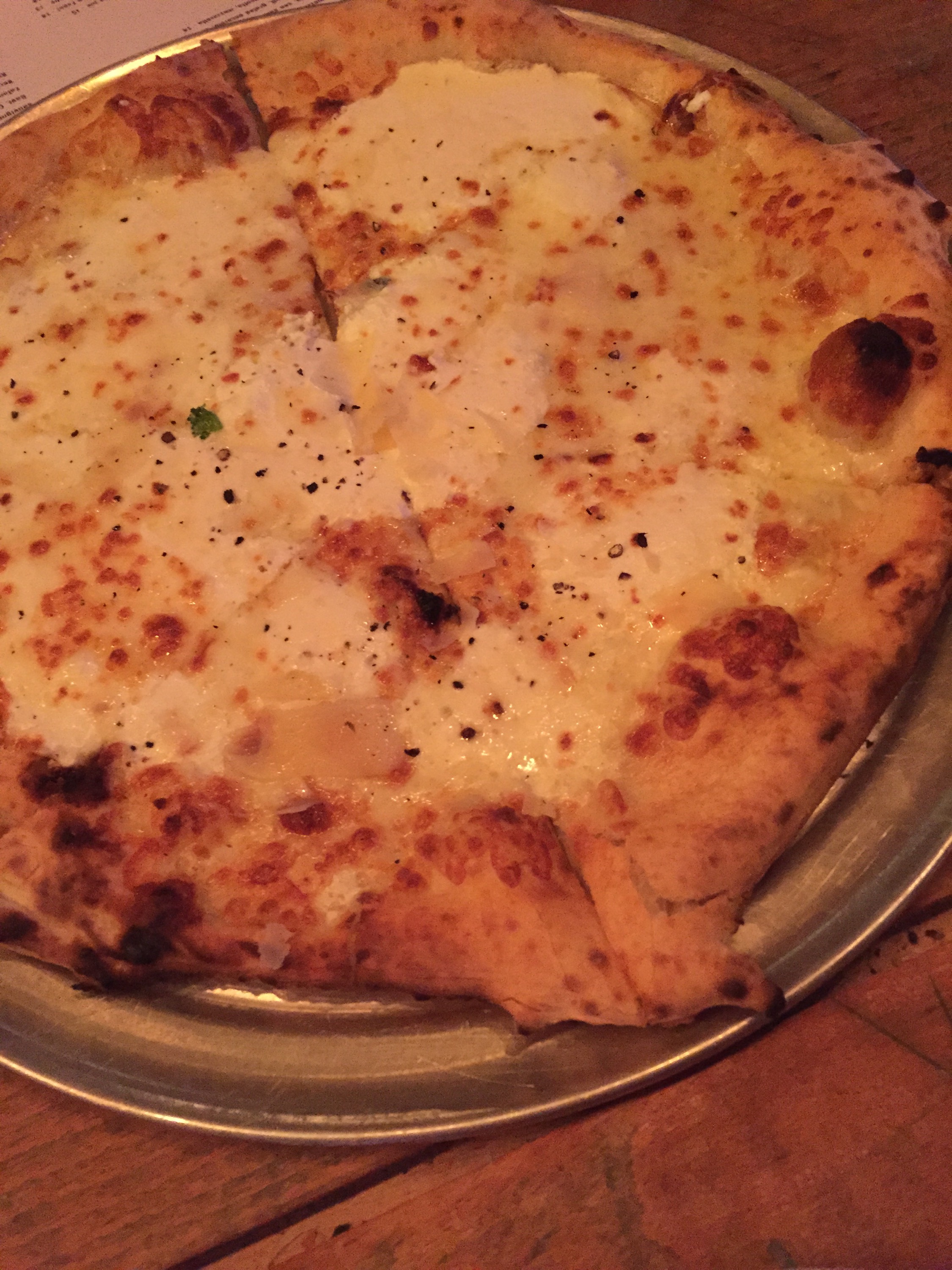 We sampled four of Amore’s round pies: For The Queen (above), The Holy Cheesus, New Haven White, and Something Fishy.