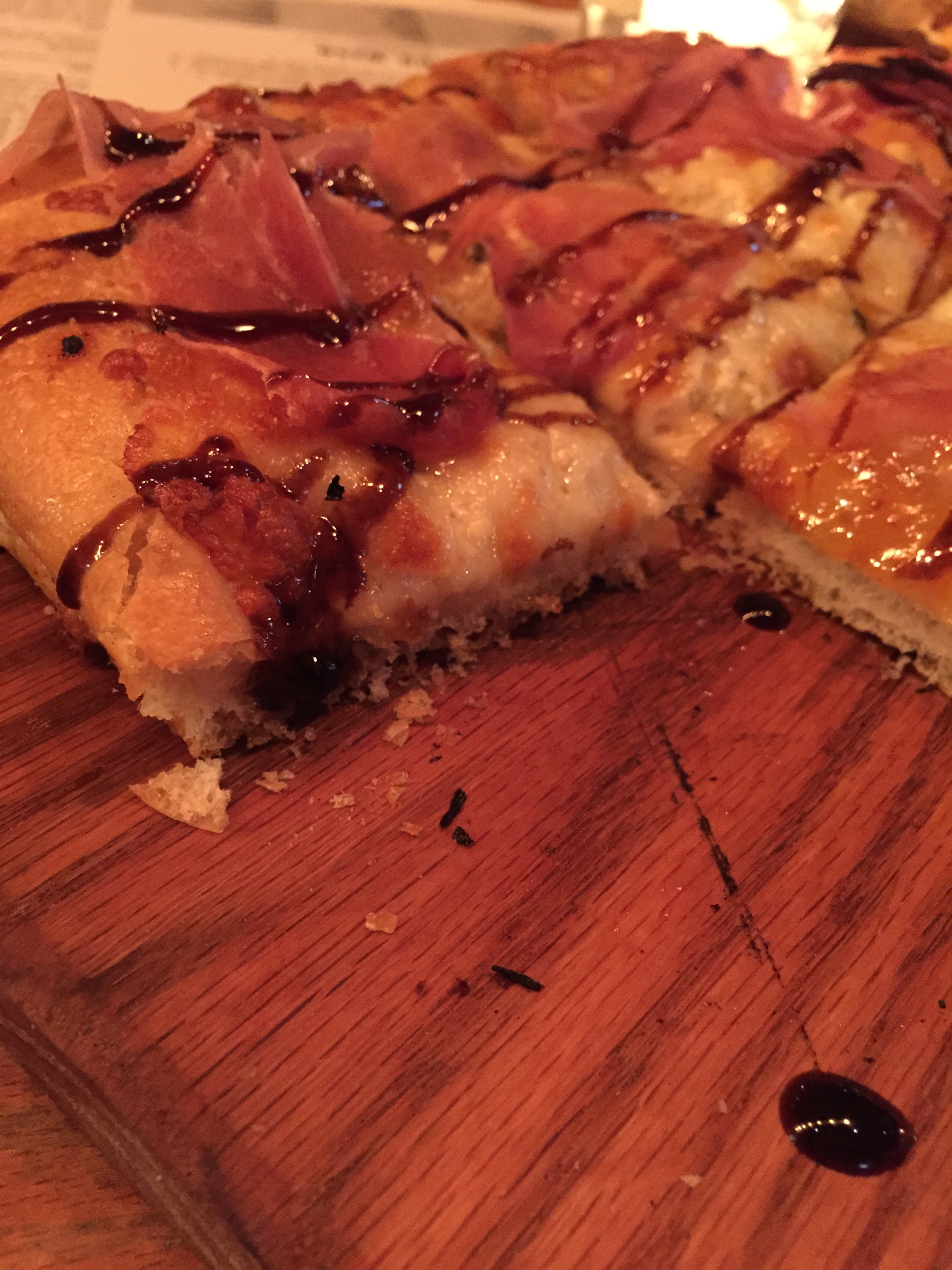 If you’re looking for a heartier pie, then the square pies at Amore are the way to go. We sampled two of the six square pies Amore offers: Pitt Master is topped with pulled pork, red onion, mozzarella, BBQ sauce, and agave nectar, and Juliet made with house mozzarella, gorgonzola dolce, fig jam, prosciutto, and agrodolce.
