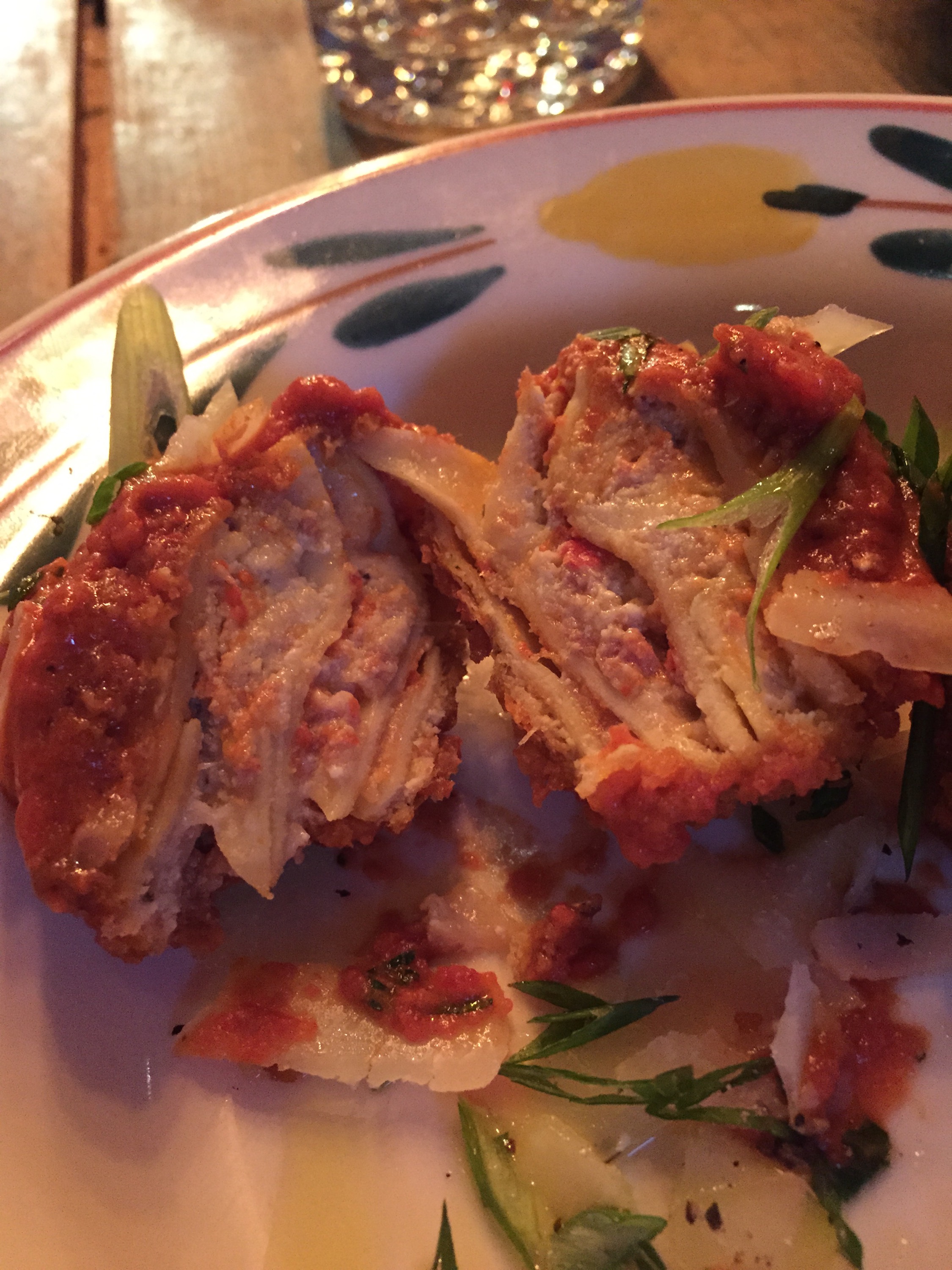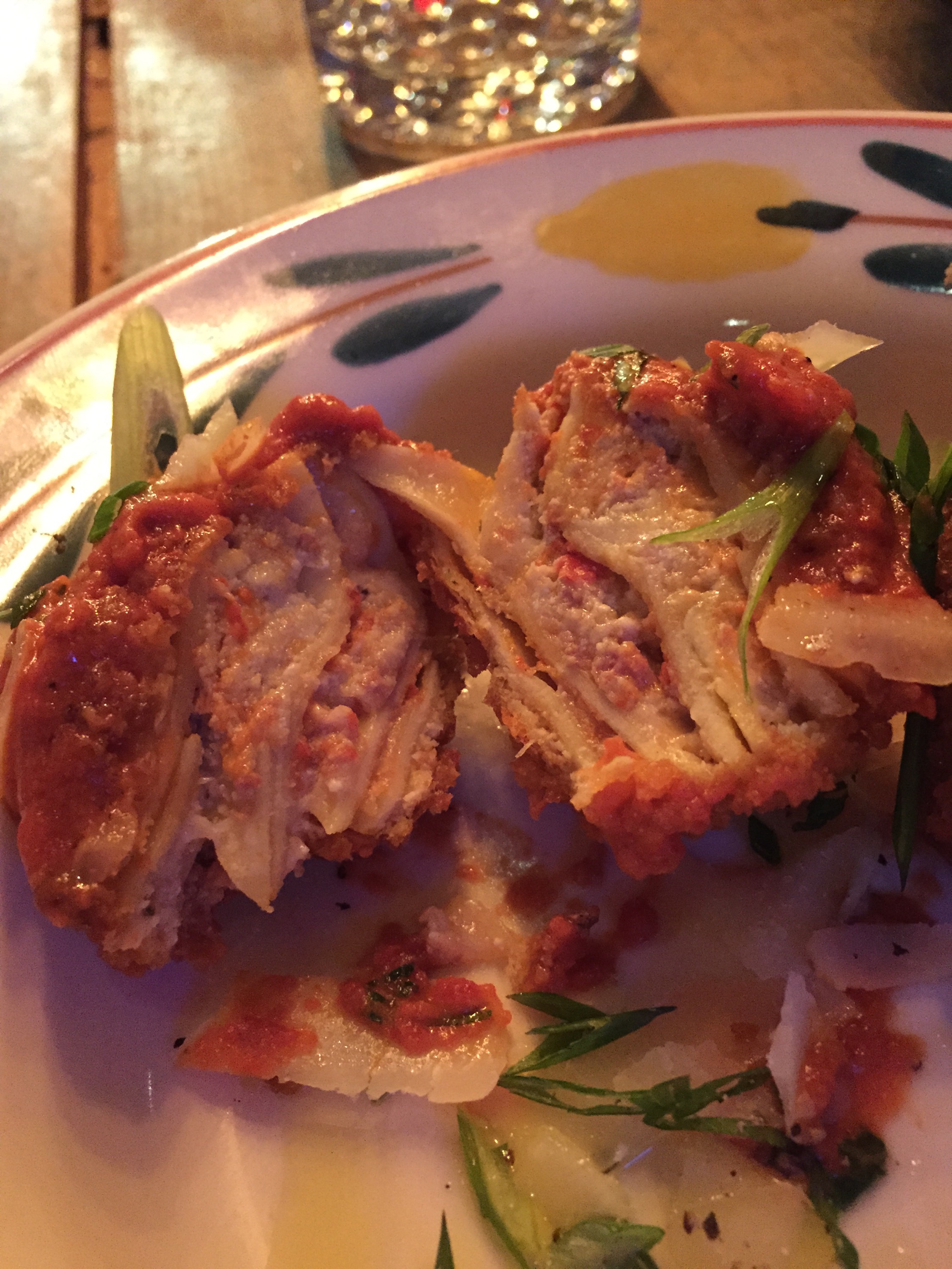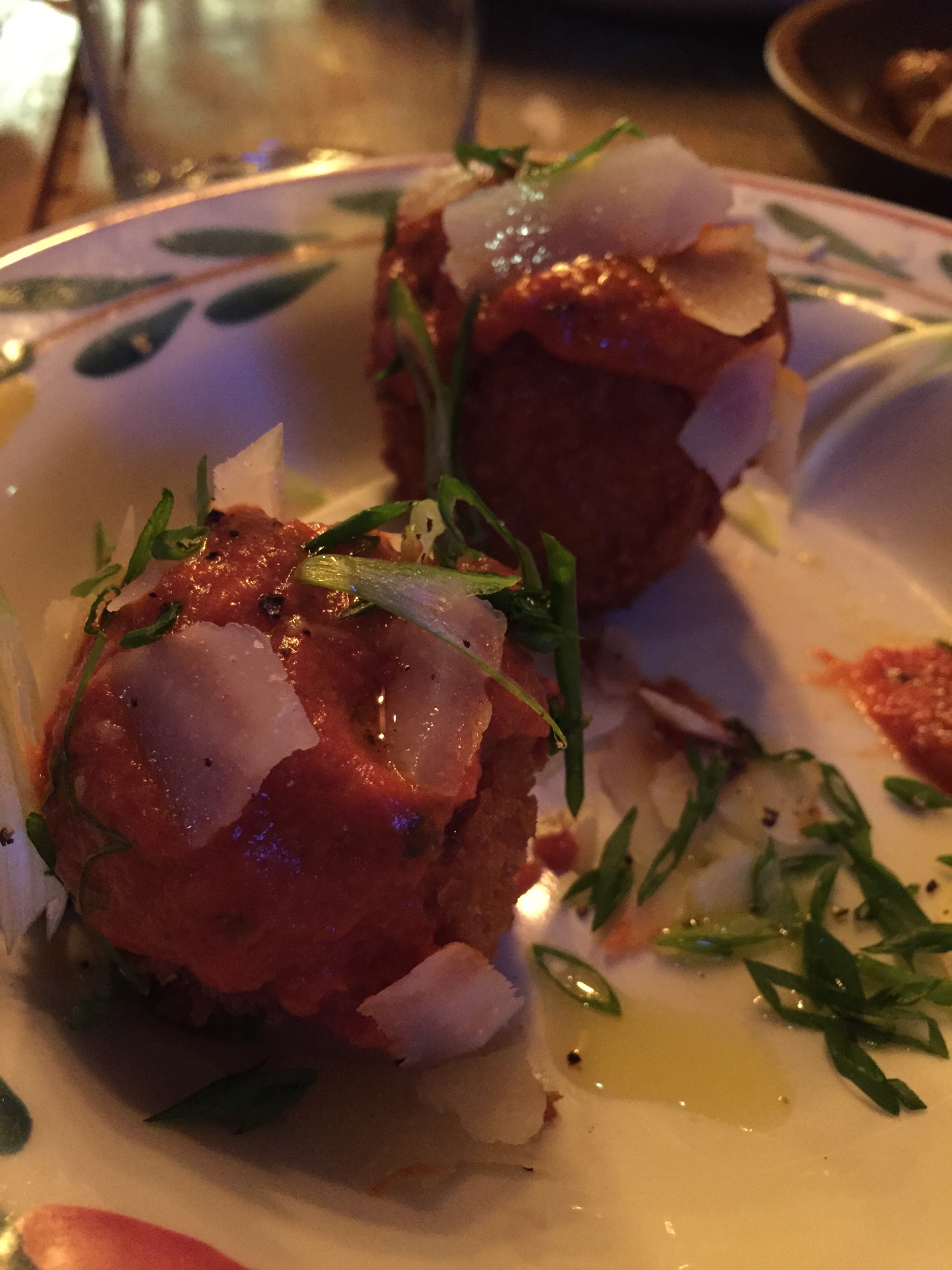 Lasagna is made with Sugo Bolognese and ricotta and then scooped into meatball-sized balls and deep fried. Deep. Fried. Lasagna. Balls. Are you on board yet? The Lasagna Balls are not greasy or heavier than you would expect a typical piece of lasagna to be. You can expect a slight crunch on the outside due to their being fried. Ordering tip: since they are a small plate item you get two Lasagna Balls per order and I promise you are going to want your very own order.