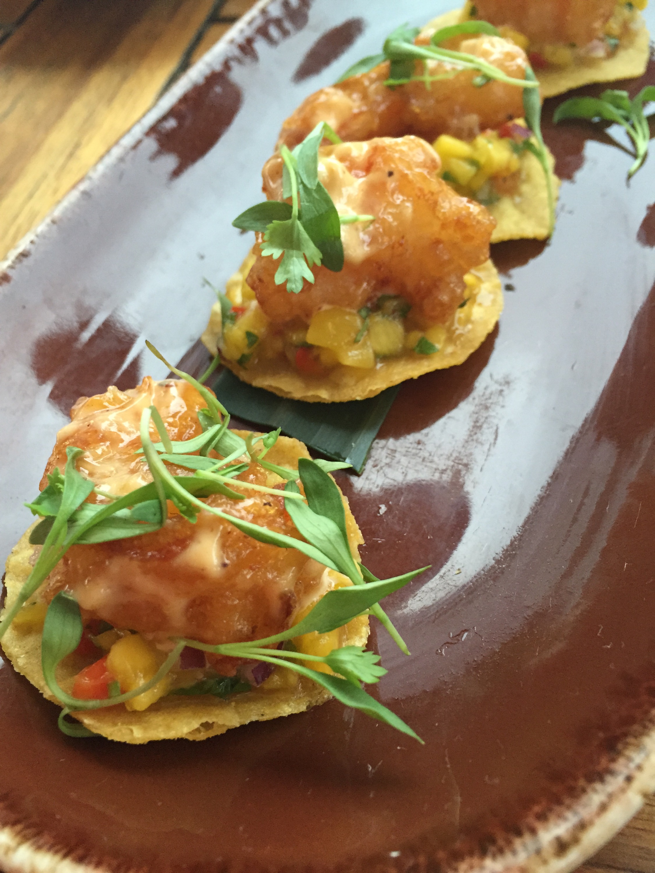 The Shrimp Tempura Tostada (above) is shrimp fried in a very light tempura batter and served with a creamy aji miraso and a mango salsa. The Crab Tostada is made with a chile arbol aioli and avocado purée. Both versions of the toastada were packed with flavor and the crispyness of the chip make them a palette pleaser.