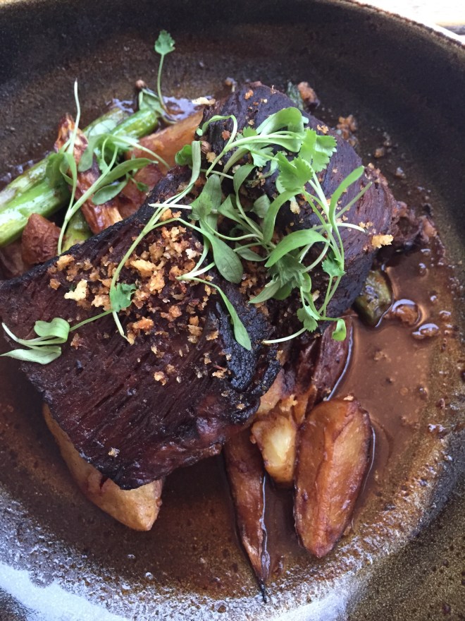 We began with one of Paloma’s best-sellers, the Braised Short Ribs. Prepared with an ancho-cacao rub and served with seasonal vegetables (fingerling potatoes here) and a horseradish gemolata the ribs fall apart with the simple pull of your fork. The ribs are a filling dish, one I can envision ordering during colder weather when you want something heartier.