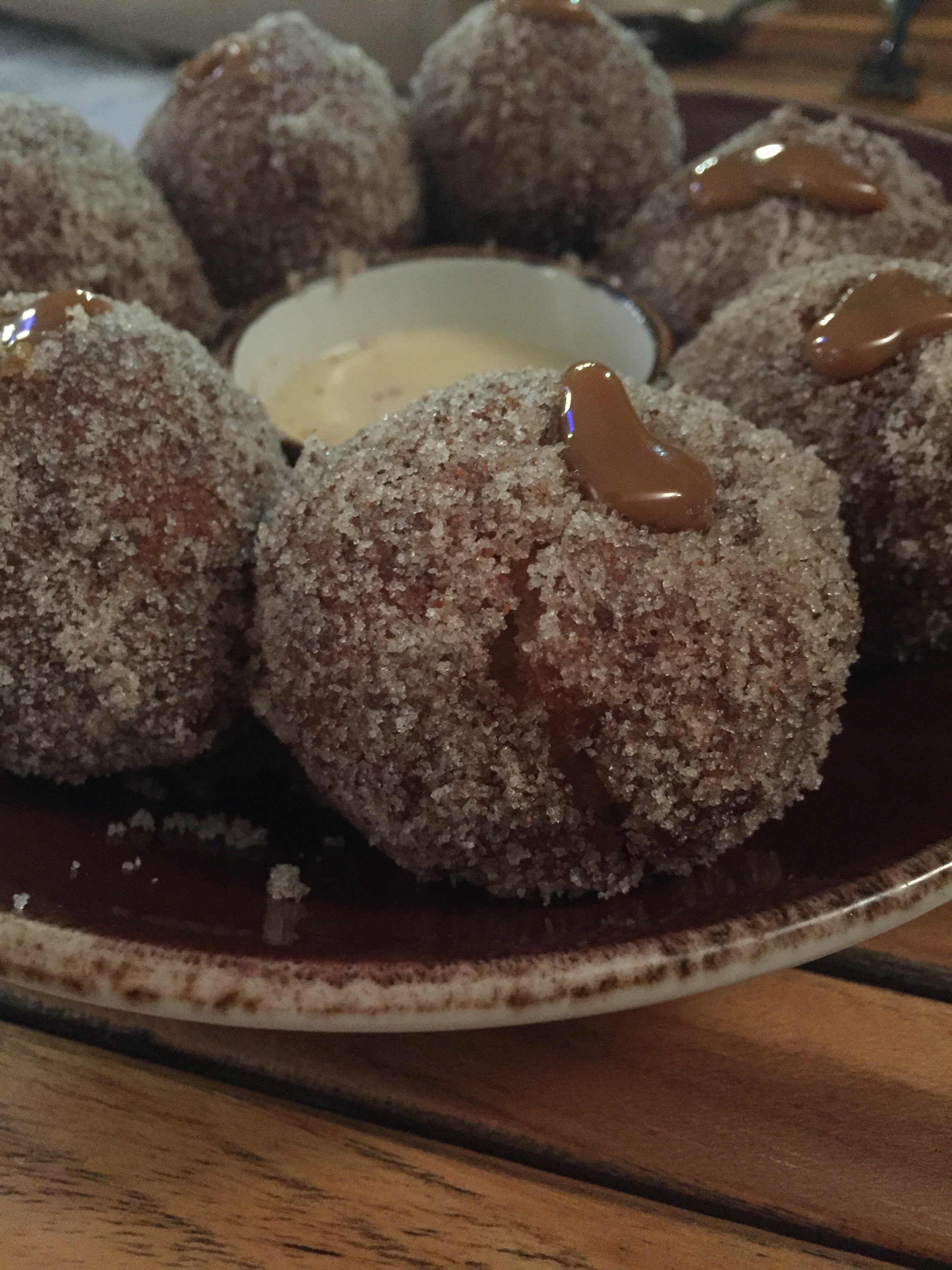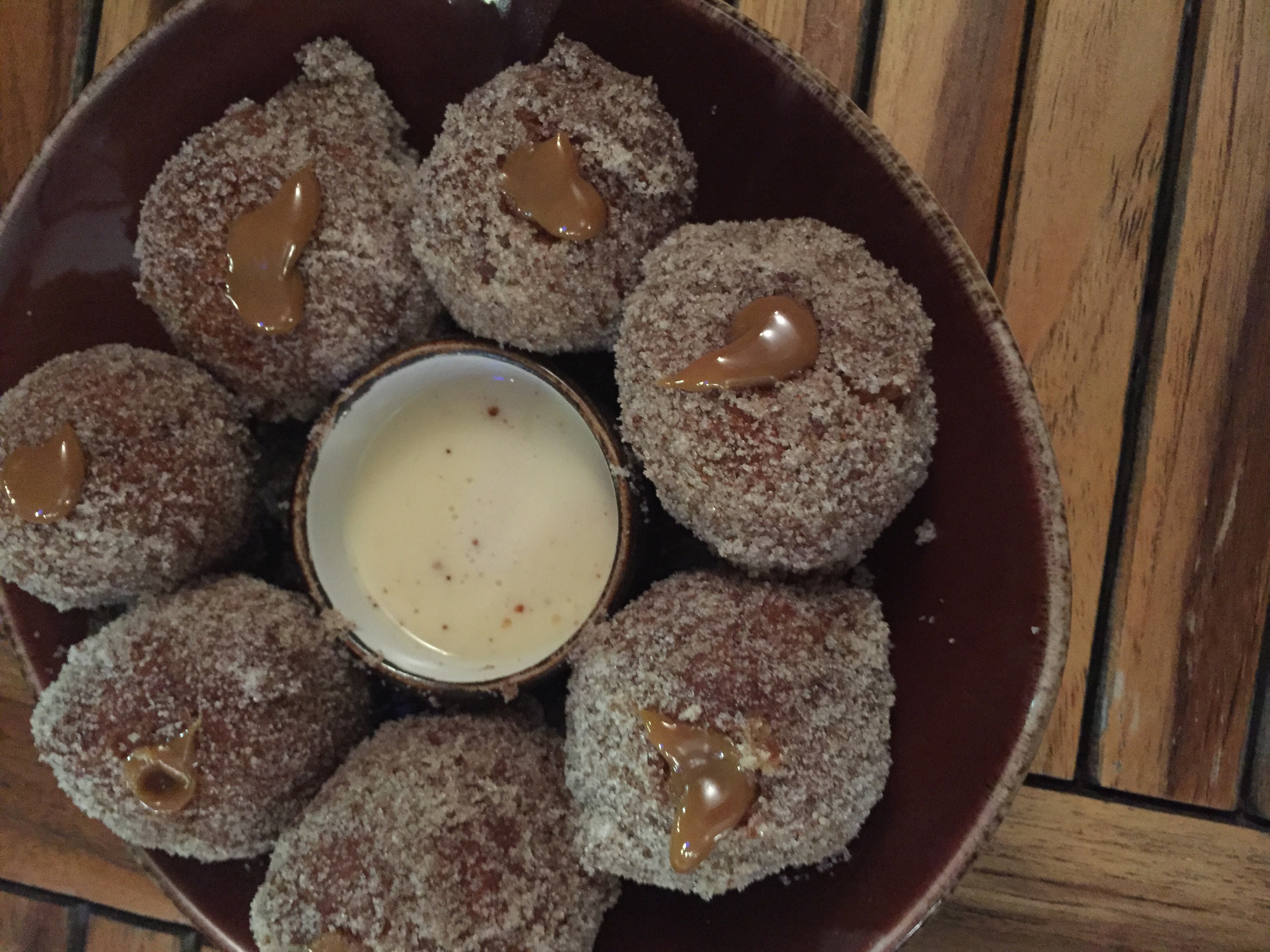These non-traditional churros are more like mini cake donuts rolled in sugar and topped with a dollop of dolce de leche and served warm with an agave-vanilla crema dipping sauce. If you like classic cake donuts with sugar topping, order these. I have to admit, I was secretly hoping these had the dolce de leche inside to make these really unique and noteworthy. One order of churros is perfect to share since they are rather large.