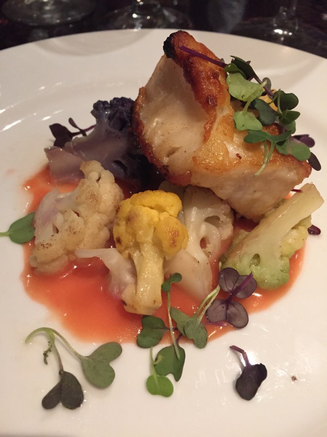 Chilean Seabass with Tri-colored Cauliflower served in a Blood Orange Cream Sauce was served next and it was so delicious our entire group went silent; you could hear a pin drop as everyone focused on this dish. The freshness of the cauliflower along with that flaky seabass with the skin-side seared so it was crispy was even further enhanced by the slightly citrus flavor of the blood orange cream sauce. I should also add that the portion we received for our tasting is smaller than the typical dinner portion of eight ounces. This course was paired with the Consenso Rosato, Saladini Pilastri from the spits Adriatic coast made from organic grapes with a slight strawberry flavor to it.